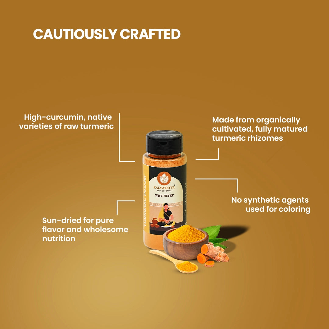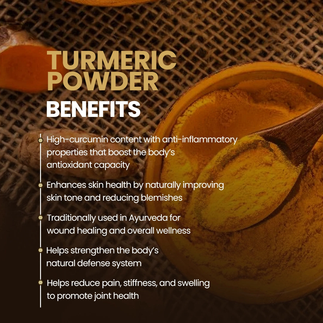 Our turmeric is naturally grown, chemical-free, and ground in small batches to preserve its rich color, earthy aroma, and high curcumin content.